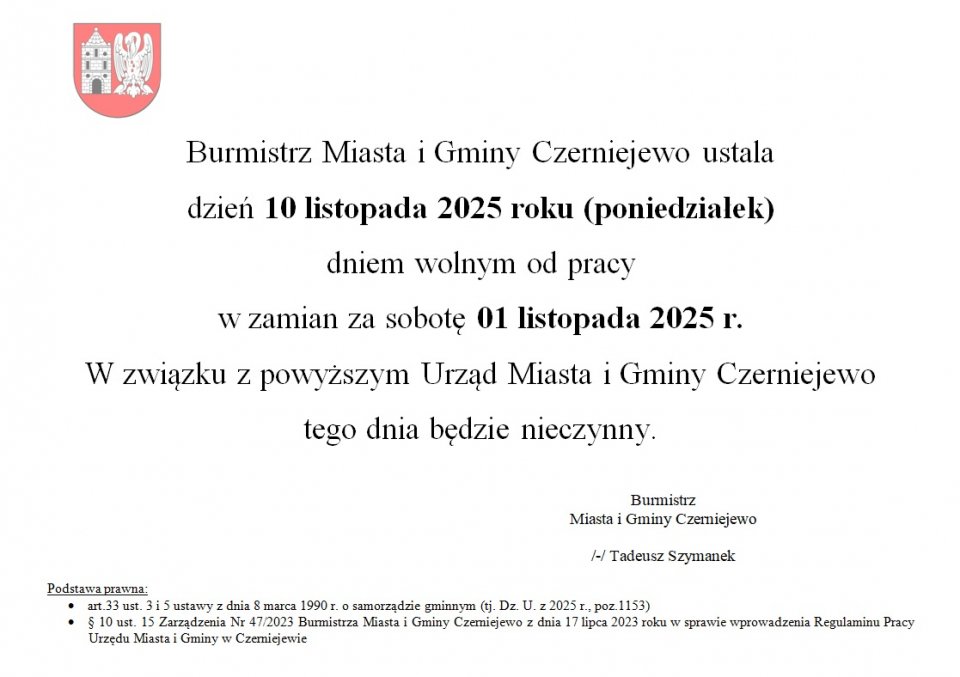 Adres skrzynki e-Doręczeń Urzędu Miasta i Gminy Czerniejewo: AE:PL-20062-86439-GDJGU-13